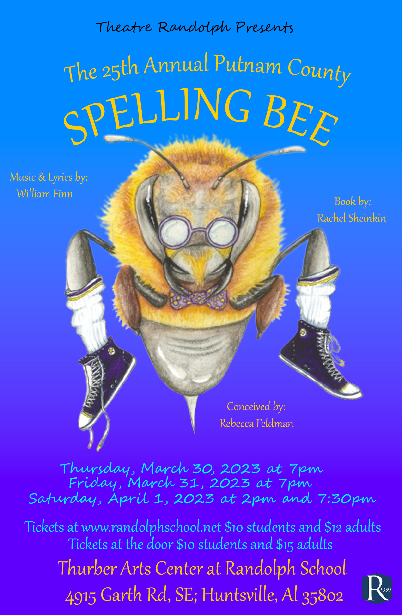 Theatre Randolph presents The 25th Annual Putnam County Spelling Bee! This hilarious and heartwarming musical is about several quirky adolescents competing in the middle school spelling bee run by three quirky grown-ups.